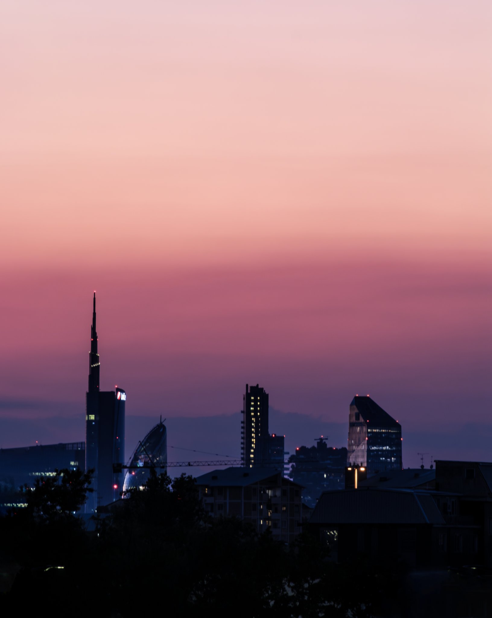 This particular one captures the sleek skyline around Piazza Gae Aulenti and Porta Garibaldi in Milan, Italy. I shot it from exactly 6.44 km away, using a long lens, just after the sun had dipped below the horizon.